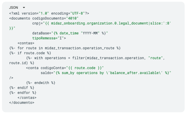 - Template definido: um template é criado para mapear os campos do ledger para o formato XML do CADOC 4010.